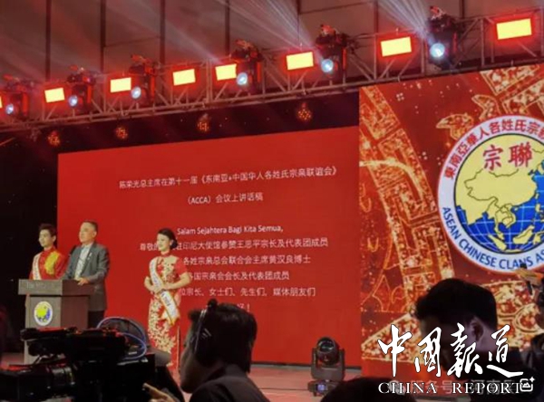 第十一届东南亚华人暨中国各姓氏宗亲联谊大会筹委会主席萧肇炫作工作报告,他强调说:东南亚华人暨中国各姓氏宗亲联谊大会(ACCA)作为东盟地区规模最大的华人团体盛会,每两年举办一次。本届大会共吸引了包括中国在内的10个国家参与,共迎来了200多名国际代表和300名印尼本地代表,参会总人数达500多人。他强调:作为第十一届ACCA大会的东道主,我们努力展现印尼华人丰富多彩的多元特色,同时也呈现印尼令人叹为观止的文化魅力。本次大会不仅将讨论ACCA成员及中国之间的经济合作,在第三届ACCA青年论坛中,也将围绕东盟及中国青年间的经济合作与文化交流进行深入探讨。希望ACCA能够为全球经济发展与世界和平作出更大的贡献!