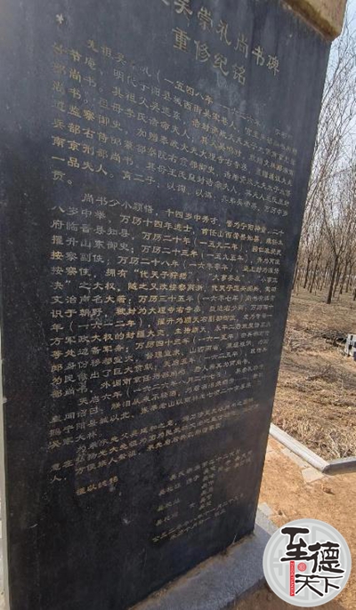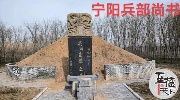 【吴崇礼墓地】吴崇礼离世后,天启年间按敕令修建他的墓地,就在如今宁阳县城往北10公里的堽城镇吴家林那个地方。吴崇礼下葬完,吴氏家族的人从宁阳城里西街吴家巷搬到墓地这儿来给他守墓,慢慢就形成了一个村子,起名叫吴家林。按照清咸丰二年《宁阳县志·古迹》的记载:“南京刑部尚书吴崇礼的墓,在县城往北二十里的雪埠山(也就是现在的张果老山)前面,是天启年间奉敕令修建的。”因为没有详细的文字记录,吴崇礼葬礼的规模和场面有多宏大,我们无从知晓。上世纪九十年代后期,我跟本家一位八十多岁的大爷聊天,提到吴尚书的时候,他给我讲了一个从老辈人那里传下来的说法。他说吴尚书出殡那天,从他家(宁阳城里西街吴家巷)一直到墓地,这一路上差不多有二十里地,全是用白布搭的帐篷,还摆满了各种各样的纸扎、执事之类殡葬用的东西。从这就能看出葬礼的规格特别高、规模特别大。这让我不禁想起曹雪芹在《红楼梦》里描写秦可卿葬礼的摆设和规模的一些文字:“亲朋好友你来我往的数都数不过来,单是这四十九天里,宁国府街上就白花花的人来人往,当官的来来去去热闹非凡……”