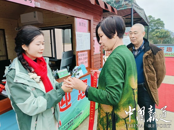 景区内凭石而生的千年牛根树也备受游客青睐。传说这棵树蕴含神奇力量,游客们纷纷围绕着它,系上景区贴心准备的红丝带,虔诚地默默许下心愿,期望新的一年平安如意。景区为每一位购买门票的游客都送上了新春祝福红围巾,红鸡蛋,红茶,红许愿树彩带,红桔子,红糖果,红饼干,八角楼红包,红绣球,既为寒冷的冬日增添了温暖,又承载着美好的寓意,让游客们在游玩过程中深切感受到浓浓的节日温情。