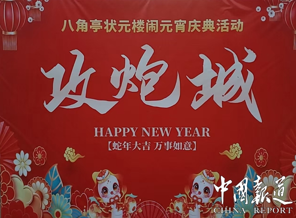 9:08 主持人到位、佛山狮队队在茶园办公门口进行舞狮的采青。9:30 舞狮队到展厅门口进行采青。09:50 全体人员到状元楼八角亭进行点香祈福,上亭舞狮,高桩采青。10:38 所有与会人员集中在状元楼,先”状元楼”和”捐款芳名榜”及”中建三局项目工程立牌”举行揭牌仪式。八角亭门口致词,唱歌表演,舞术表演,拔河比赛,11 :00 10对夫妇带小孩上3楼撞春鼓,拿红包100元。11:18 三楼发元宵节绣球,糖果活动。11:38 点烧攻城炮活动,发糖果红包最大1000元/个,最小5元/个,共91红包。11:50 全体人员在舞狮队的带领下到大茶壶进行高桩采青,之后一齐走红金砖道,观看学习地质公园科普知识,前往宴会厅。12:18 宴会厅,公司领导或股东致词,开香槟、狮头上台舞狮、唱歌表演篝火起动。(图文/吴天下 姚雯璐 吴庆尚)