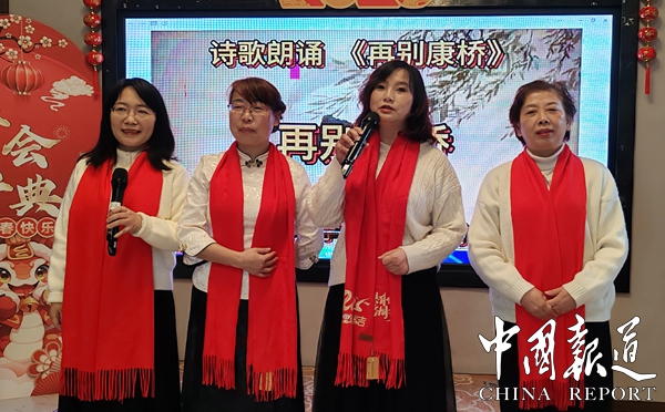 为了活跃浓郁的文化氛围,部分会员现场表演了精彩的舞蹈、盲人作家王舒展倾情献唱。“轻轻的我走了,正如我轻轻的来;我轻轻的招手,作别西天的云彩。那河畔的金柳,是夕阳中的新娘;波光里的艳影,在我的心头荡漾。软泥上的青荇,油油的在水底招摇;在康河的柔波里,我甘心做一条水草!那榆荫下的一潭,不是清泉,是天上虹;揉碎在浮藻间,沉淀着彩虹似的梦。......”一首徐志摩的《再别 康城》情景诗朗诵由李梅、李华等人即兴表演迎来阵阵掌声。(图文/吴蜀丰 卢光顺