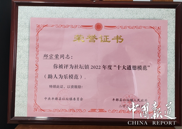“农民合作社市级示范社”“致富带头人”“十佳新农人”“十大道德模范”商会“优秀会员”“互助之星”等诸多荣誉激励邱宗荣在乡村振兴之路上砥砺前行。