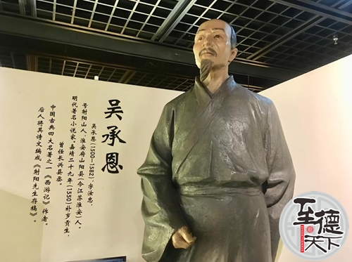 吴承恩(约1504—1582年),字汝忠,号射阳居士、射阳山人。祖籍涟水(今江苏省涟水县),后徙居山阳(今江苏省淮安市)。中国明代作家、官员。承恩十多岁时就以文才出众而享有盛名。嘉靖八年(1529年),就读于龙溪书院,成为“法筵人”,虽才华出众,但多次名落孙山。吴承恩约于嘉靖二十一年(1542年)完成小说《西游记》初稿,之后继续走科考之路,但仍仕途坎坷,直到嘉靖二十九年(1550年),才补为岁贡生,后落榜,在国子监就读。隆庆二年(1568年),得以平反,应召赴湖北,任荆王朱翊钜府第纪善。隆庆四年(1570年),辞官回乡。约于万历十年(1582年)去世。无后人。
