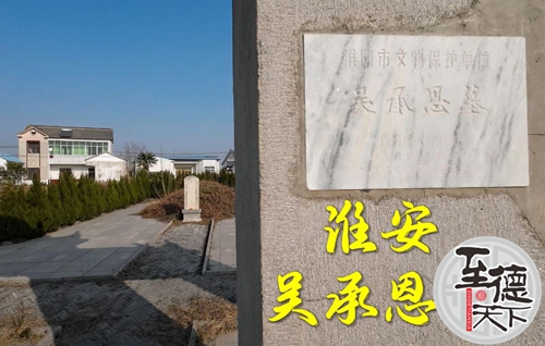 墓址 吴承恩墓位于淮安城东南的马甸乡二堡村,在大运河东堤东的南干渠东边。墓园呈方形,占地面积约2000平方米。墓前竖有1.5米高的石碑,上刻有阴文“荆府纪善吴公承恩之墓”10个字。墓南10米有4柱3门带脊檐的牌坊一座。柱高8米,横坊书有楷书“吴承恩之墓”五字,1974年12月,吴承恩及其父吴锐之墓同时被盗。1981年8月,淮安市人民政府找到吴承恩的墓地,并建为吴承恩墓园。1987年9月,吴承恩墓被淮阴市人民政府公布为文物保护单位。