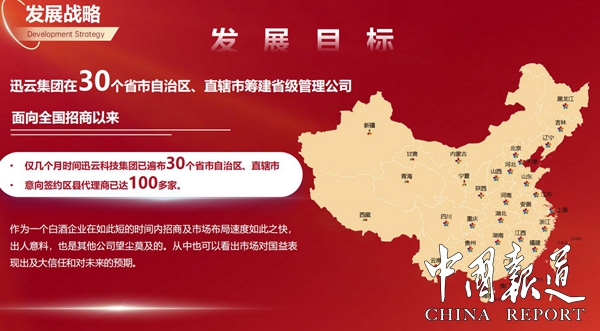 据现场负责人张新鹰介绍,迅云集团是一家多元化、多板块发展,以实体经济为主,以互联网为辅的科技集团公司。公司主要板块有酱酒、生态农业、康养(保健酒)、供应链金融、日化用品、云仓物流;特别是酱酒板块,以酱酒增长确定性、空间容纳性、投资安全性,是其他产品所不能比拟的,我们非常看好酱酒市场!