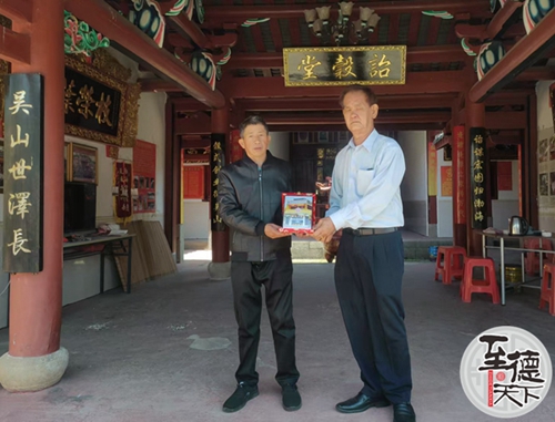 受到龙岩市吴氏宗亲会理事、奥杳吴氏宗亲会秘书吴仰忠和吴大可等陪同和热情接待,他们参拜了奥杳吴氏祖祠诒谷堂远祖,同时赠送″至德留芳"牌匾、赠书“吴学特刊●创刋号”参访下洋镇中川村虎豹别墅展览馆和胡氏宗祠、吴伯雄祖籍地思贤村、奥杳村"一等第"裕德楼(现为福建闽西红军标语展览馆)、闽粤两省边际交流下洋市场及晋江等地方。