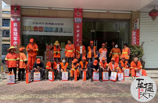近日,吴猛鸿牛温岭总经销商团队负责人谢兵,开展公益活动——“送清凉”行动收获一份暖心。当环卫工人们收到吴猛鸿牛功能量饮料后表示十分感谢,这份爱心得以传递,让这座城市更加温暖。
