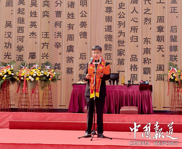 最后,由常熟市仲雍文化研究会会长吴建明诵读《乙巳岁三吴子弟公祭传世始祖仲雍公文》: