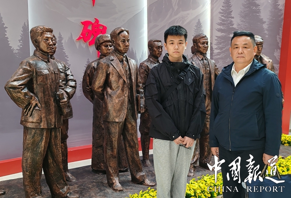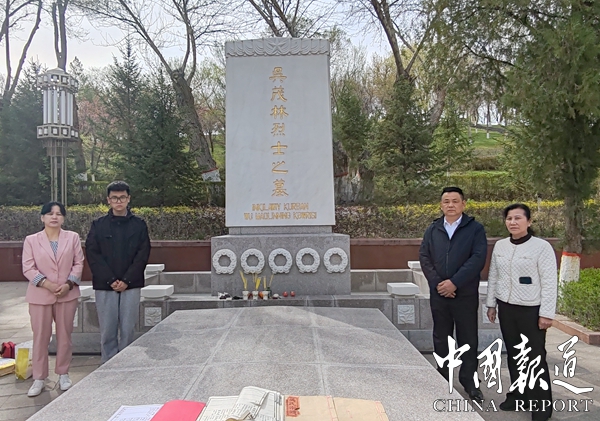 近日,刚考研成功后的吴显,为了爷爷的吴义和生前心愿,随父亲吴武胜、母亲钟暇,在姑姑吴白雪的陪同下踏遍千山万水车程约3395公里,从湖北省咸宁来到新疆乌鲁木齐革命烈士园,终于找到了曾祖父吴茂林的墓碑,在吴茂林的墓碑前全家行跪拜之礼,敬香上家乡茶叶,花生米,肉包苹果等贡品时。正巧来自乌鲁木齐市的中学生数百名在解说员的介绍下逐一缅怀烈士场景令吴显全家人倍感亲切和温馨。自己祖父在九泉之下时常有人来祭奠感到万分荣幸。在烈士陵园展览馆,在烈士群塑像前,在吴茂林塑像前,吴显仅与曾祖父像貌极度相似,可见基因之强大令人震惊。