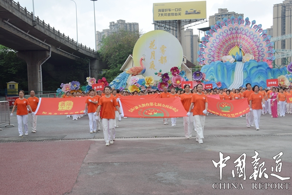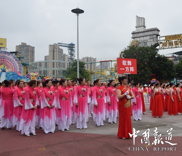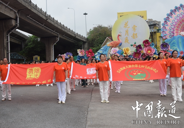 崇高健康大舞台第七届全民运动会(重庆赛区)开幕式今天(4月27)上午在渝北区圣名世贸游乐城隆重举行!来自阳光义工知青公益联盟、文艺联盟旗袍总团、太极总团、歌舞总团近1000多名志愿者代表参加了本届运动会开幕式。