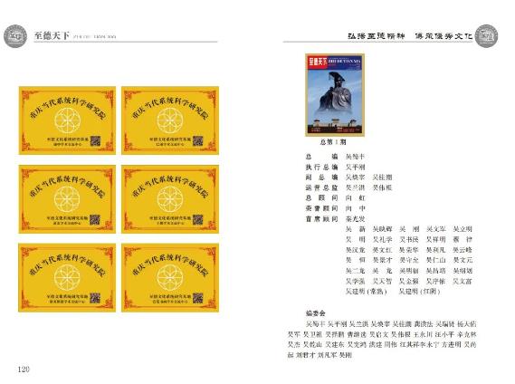 15重庆至德文化系统研究基地主任、天下吴氏网、至德天下吴氏网创始人吴蜀丰 赠送《至德天下》创刊号50册。