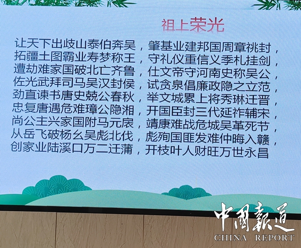 吴立明在发言中就家族辈份的象征意义,家族辈份排序规则及文化内涵,辈份在家族事务、礼仪活动中的重要性,辈份传承的价值,尊老爱幼、长幼有序,辈份对维系家族和谐有着重要作用。同时分享个人在家族中因辈份关系收获的成长与感悟,
