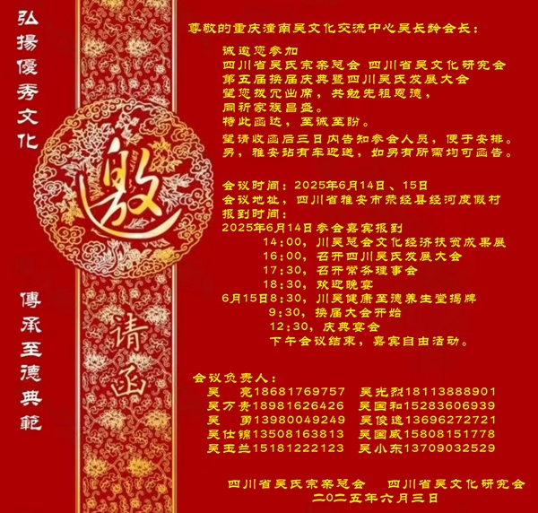 四川省吴氏宗亲总会并全体宗亲: