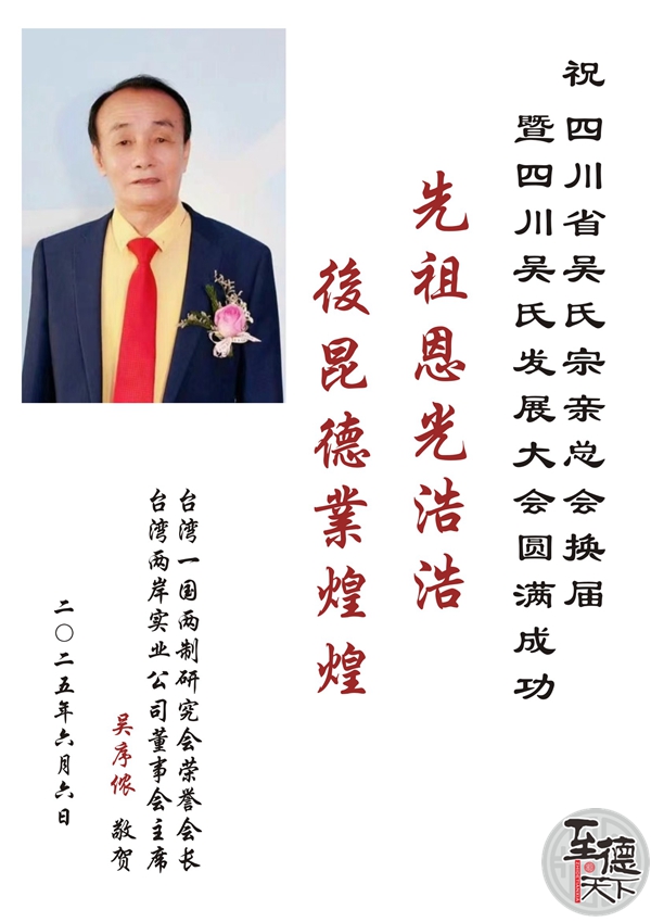 台湾两岸实业集团董事长吴序侬致川吴总会贺电