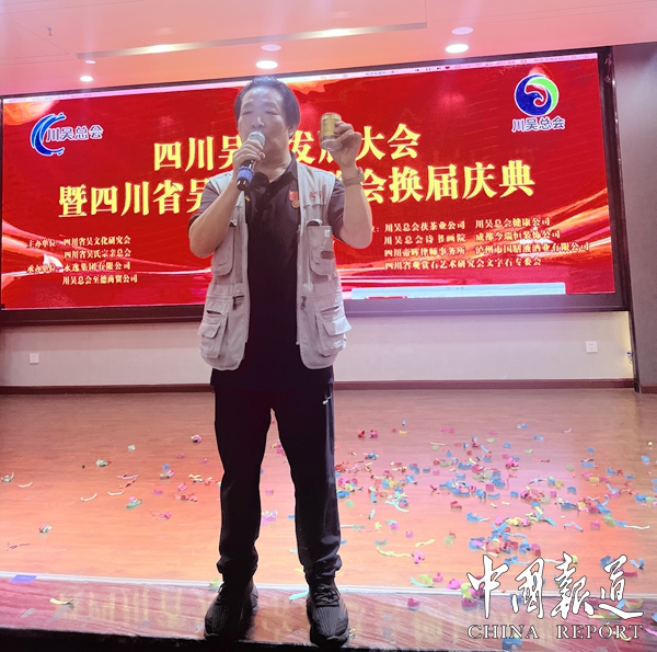 上午十点半,全体起立齐唱《中华人民共和国国歌》,新当选的四川省吴氏宗亲总会会长吴天智致欢迎词并作工作报告,吴天智首先介绍了参会部分嘉宾,然后介绍自己组建成立四川吴氏宗亲总会至今的发展历程,夫人秦芳在会上介绍了与丈夫吴天智相依为命、相濡以沫的感人故事,会上还表彰四川广安、万源、宣汉等部分区县分会优秀会长代表。监事长、财务总监吴光烈作川吴总会财务审计汇报。部分代表先后发言,川吴总会茯茶公司、健康公司及至德公司负责人介绍了企业特点、优势。丰富多彩文艺节目演出,播放吴猛鸿牛企业之歌《鸿牛之光》。
