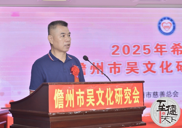 儋州市吴文化研究会监事长吴尚茂致辞。首先他代表儋州市吴氏宗亲文化发展有限公司、儋州市吴文化研究会,向长期以来热心公益、慷慨激昂捐资、鼎力支持儋州吴氏奖助学金事业的所有爱心人士,表示最崇高敬意和最衷心感谢!