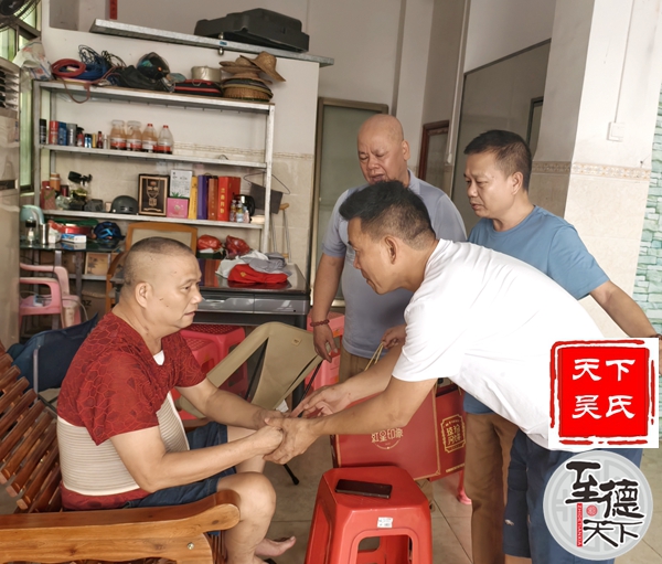 在他家中,常务副会长吴富荣和一起来访的慰问人员与吴德雄及其家人进行了亲切的交谈,详细询问了他出院后的身体恢复情况、日常生活起居以及存在的实际困难。“您最近身体感觉怎么样?胃口好吗?一定要记得按时服药,多休息,保持心情舒畅。”慰问人员握着吴德雄的手,仔细叮嘱康复注意事项,并分享了秋季保健养生的小知识。他们鼓励吴德雄宗长,树立信心,安心静养,争取早日完全康复。