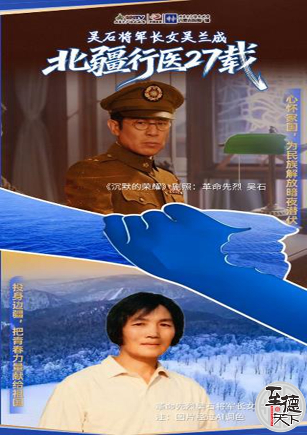 吴兰成(1931—2020),福建人,吴石将军长女。1953年毕业于上海第一医学院医疗系,同年作为第一批上海支援内蒙古大兴安岭林区支边大学生赴牙克石森林工业管理局卫生所(内蒙古林业总医院前身)支援边疆建设,任内蒙古林业总医院首任儿科主任。在零下40℃的极寒环境中从儿科医生成长为副院长,期间主持编写《儿科常见病多发病的治疗常规》,创新运用中西医结合疗法使小儿病毒性肺炎病死率从8.2%降至3.4% 。