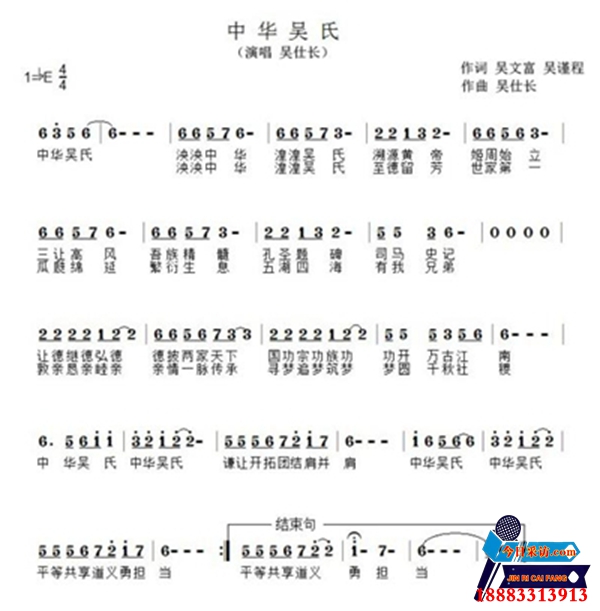 ◎这首振奋人心的《中华吴氏》,歌词大气磅礴,文富主席和谨程秘书长对吴氏”三让高风吾族精髓”的精辟剖析振奋人心,“五湖四海有我兄弟”的铿锵呐喊,令人热血沸腾。 ”谦让开拓,团结肩并肩,平等共享,道义勇担当。” 为中华吴氏点赞--吴立新《廉政中国》副总编辑。