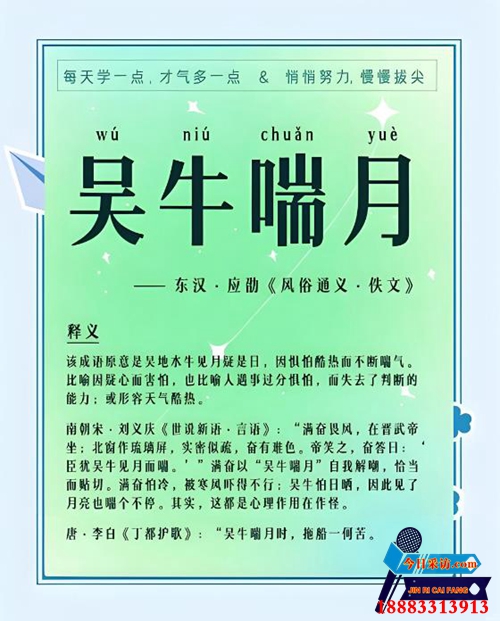 历史与现实的对话 “吴牛喘月”源于《世说新语》,以吴地牛对月光的误读,寓言了人类对威胁的过度敏感。这一成语的智慧在于,它揭示了恐惧的荒诞性——当外界刺激被内心焦虑放大时,平静之物亦可成为恐慌之源。在快节奏的现代社会,它如同一剂清醒剂,提醒我们:真正的挑战不在于环境本身,而在于我们如何解读与应对。其简洁的叙事,跨越千年,仍为心灵困境提供着解药。