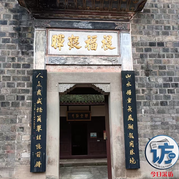宗祠坐落于巍峨叠翠的群山环抱之中,俯瞰大江奔流,遥想昔日商贸码头之繁华,一种神秘而厚重的历史感扑面而来。白墙黛瓦与古镇的苍翠自然交融,飞檐如翼,翘角凌空,不仅是建筑美学的展现,更是家族地位与精神的象征。宗祠,仿佛步入了时间的隧道。尺余高的门槛,无声传递着“入门知礼,谨言慎行”的祖训。恳亲团成员缓步而行,目光所及,皆是文化的细节。正堂“禔福凝晖”匾额高悬,两侧楹联“山水钟灵舞风翔龙开胜境,人文鼎盛握兰攀桂忆前修”,道尽此地人文与自然的交融。后堂“樾荫堂”牌匾下的对联“人怀厚德知春暖,树有浓荫你夏凉”,则寄托了德泽后人、家风绵长的期许。中厅家训齐全,“忠孝廉节”四大字虽历经风雨,金漆斑驳,但其核心训诫依然清晰有力,深刻体现了吴氏文化中“修身齐家治国平天下”的价值根基。