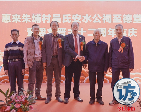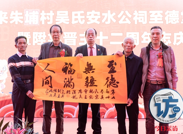 今日采访网讯(吴明文潮汕报道)11月27日(乙已年十月初八),风和日丽,丹桂飘香。朱埔村安水吴氏宗祠至德堂祥云汇聚,张灯结彩,鼓乐喧天,迎来了落成十二周年的盛大庆典,百倍喜庆。七届世吴主席吴汉龙带领惠来县吴氏宗亲总会二十多位宗亲亲临现场,与潮阳曲溪等房祖代表、朱埔村各房裔孙、朱氏宗长宗贤、村委领导、小学校长及各界来宾共六百余人齐聚一堂,共襄盛举。