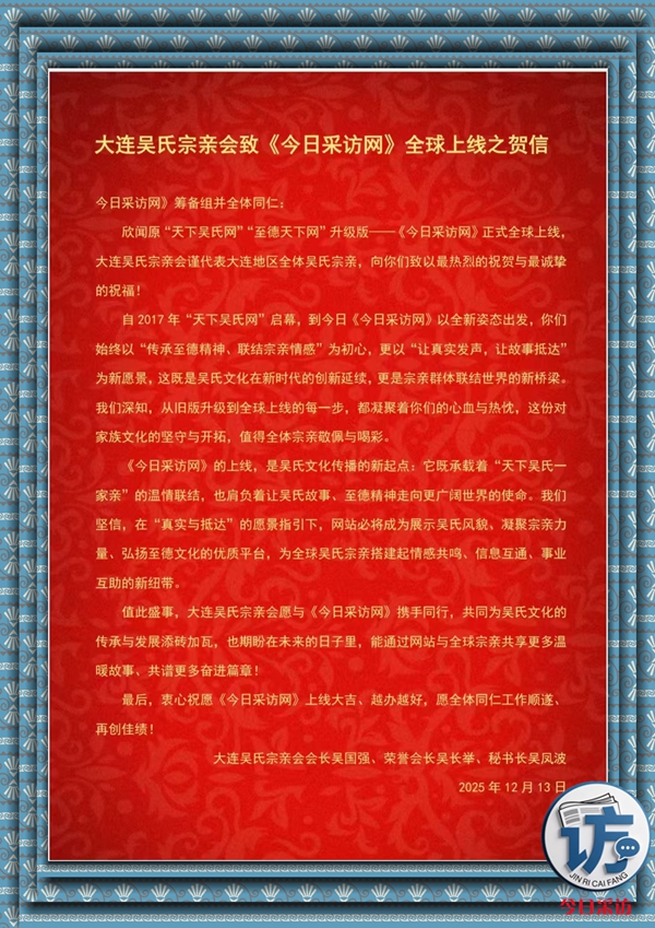 【关于我们】今日采访.com、天下吴氏网、至德传媒网隶属于泰伯文化传媒(重庆)有限公司独家运营的三网合一公益性网站,集官网、APP、自媒体、抖音、视频号、公众号同步传播的综合性融媒体平台。