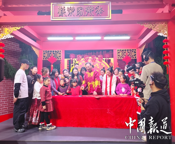 2月2日晚,民建中央文化委委员,民建中央画院院士,辽宁财贸学院经济管理学院金融教研室银铃教授吴熙雨,应邀参加辽视春晚写“福”字的视频录制。辽视春晚录制现场喜气洋洋,气氛热烈,家长带着孩子们,穿着节日的盛装,在欢乐家乡年的小亭子里,围绕在吴老师的周围,饶有兴趣地认真观看吴老师用各种书体写的“福”字,不时发出一句句的赞叹声。书写结束,家长和孩子们举着刚刚写好的各样“福”字,对着摄像机一起快乐的高喊:“过年了”,把活动引向高潮。