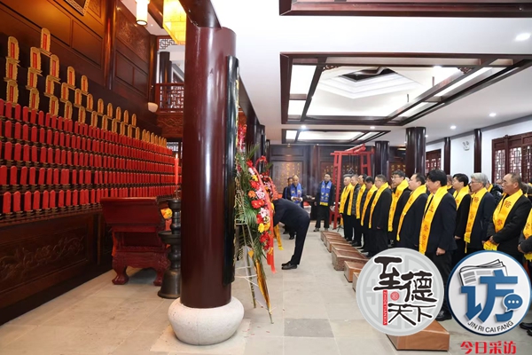吉时一到,国歌奏响,祭祀大典正式开始。全体人员依仪轨恭行三鞠躬礼,肃穆恭敬、井然有序。随后上香、献花、敬酒、恭诵祭文等仪程依次进行,香烟寄追思,清醴表感恩,花篮呈敬意,完整展现吴氏公祭传统规制。