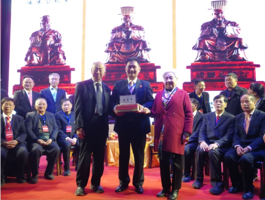 两位世界杰出华人奖获得者---原国务院副总理吴桂贤宗姐和世界吴氏宗亲总会及香港吴氏宗亲总会的永远荣誉主席吴天赐宗长,同时恭贺吴铭煜宗长为莞吴会的贡献,同时恭贺吴铭煜宗长对统一三公仪像活动的支持。
