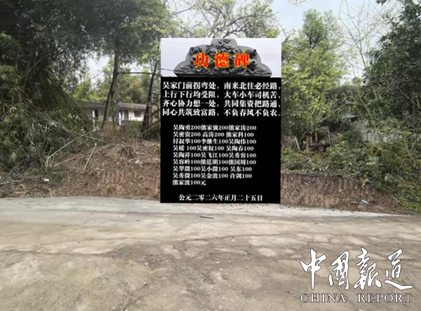 有道是,吴家门前拐弯处,南来北往必经路,上行下行均受阻,大车小车司机苦,齐心协力想-处,共同集资把路通,同心共筑致富路, 不负春风不负农。(图文/吴蜀丰 吴双)