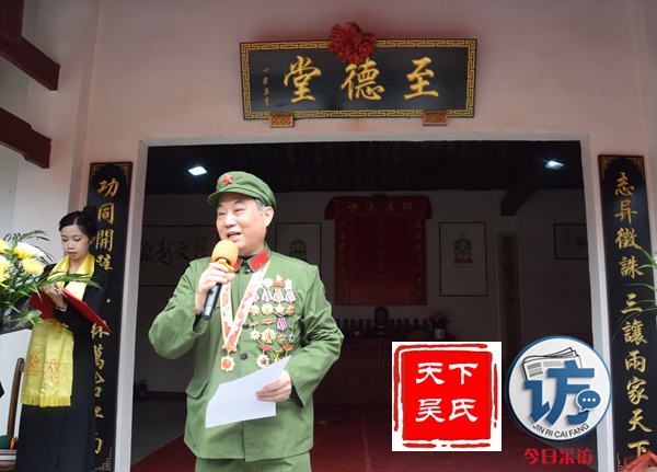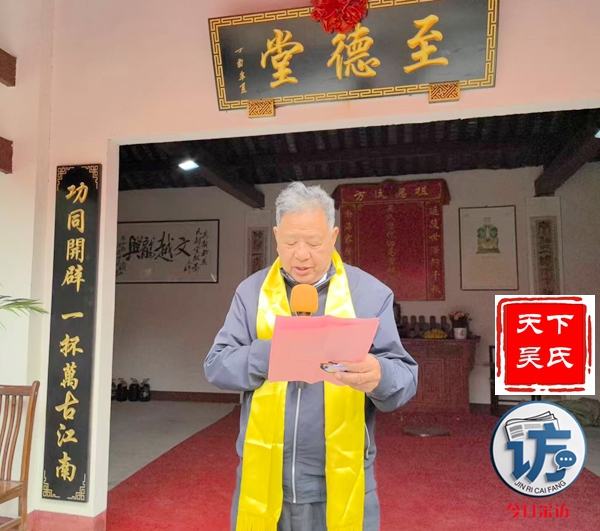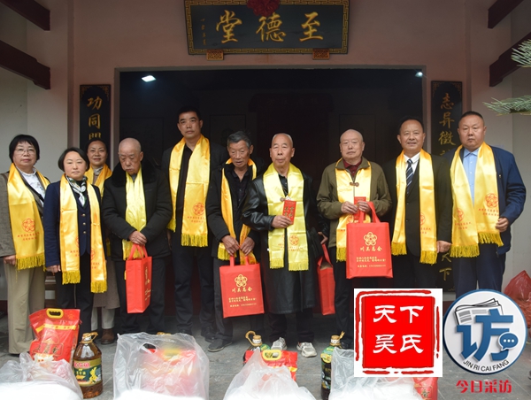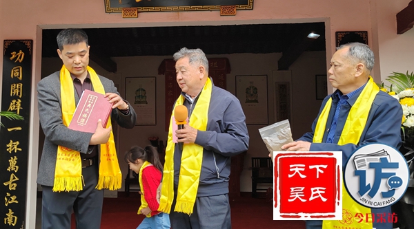 随后,举行庄重严肃的祭祖仪式,首先由主祭人吴光勇敬上龙头香,随后其他主祭人依次敬献花篮、茶水、敬果品,美酒。最后吴光平宣读祭文等仪式。川吴总会现场还慰问了部分高龄宗亲。
