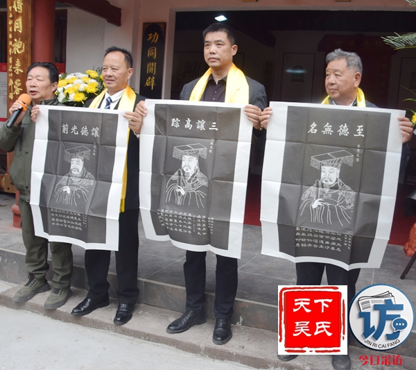 参会部分代表先后上台致词,四川省吴氏宗亲总会常务会长、新都吴氏文越公宗亲会会长吴光勇致欢迎词,四川省吴氏宗亲总会吴天智会长致辞,今日采访网、天下吴氏网创始人吴蜀丰在致词后受无锡祖地吴乐一教授特别委托向主办方赠送吴氏开姓始祖泰伯公、传代始祖仲雍公及延陵王季札公(泰伯19世裔孙)原始画像。