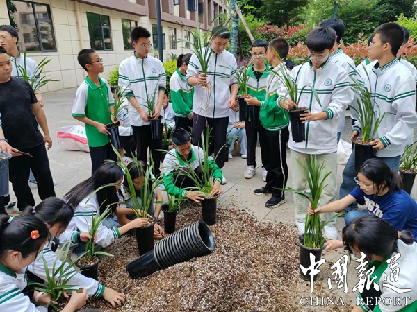 立足古蔺“春兰之都”资源,打造近500平方米兰花基地“树蕙园”,养植万盆兰花(百余种)。学生在养兰、赏兰中悟兰品:选土知环境育人、培土明张弛之智、植根悟中正之理、浸盆思反省之要,培育“若兰修文心、若芷染正气”的君子品格。同步以“农耕文化”厚植根基,在宿舍楼周边开辟3亩“开心农场”劳动实践基地,学生亲身耕作、采摘收获,更在校内售卖作物体悟“劳动创造价值”。活动获评市级十佳德育品牌。此外,以德育活动月串联远足天马山、红歌会、运动会等特色活动,构建系列化德育课程体系。兰香浸润、农耕实践与德育活动交织,传承“耕读传家”文化根脉,筑牢文化自信,让“耕读持身”成为“金兰红”品牌独特精神标识,为学子注入兰之雅韵、红之底色,为县中振兴涵养精神力量。