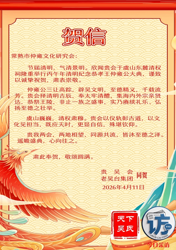 贵吴会老吴台集团致常熟市仲雍文化研究会贺信