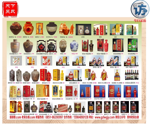 公司推出的主打产品是[老吴台]酒、[吴酒师]高品质桶装酒、[吴台]酒牌系列酱香、浓香白酒。[老吴台]酒、[吴酒师]高品质桶装酒、[吴台]酒牌系列优质酱香、浓香白酒均是严格遵循茅台镇酱香、浓香白酒的传统酿制工艺,在端午采曲,重阳下沙,九次蒸馏,八次发酵,七次取酒,历时数年精心酿造而成。老吴台酒、[吴酒师]高品质桶装酒、[吴台]酒牌系列酱香、浓香白酒产品投放市场以来,以其上乘的酒质,精美的包装,合理的价格,赢得了众多白酒爱好者的青睐。