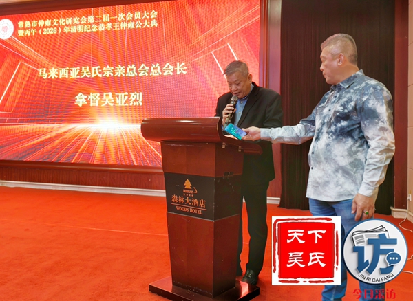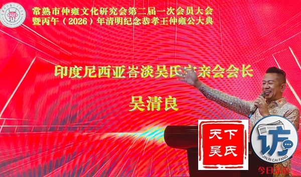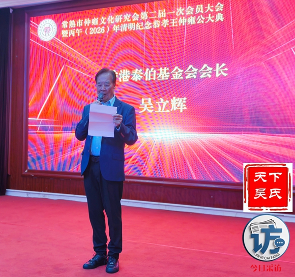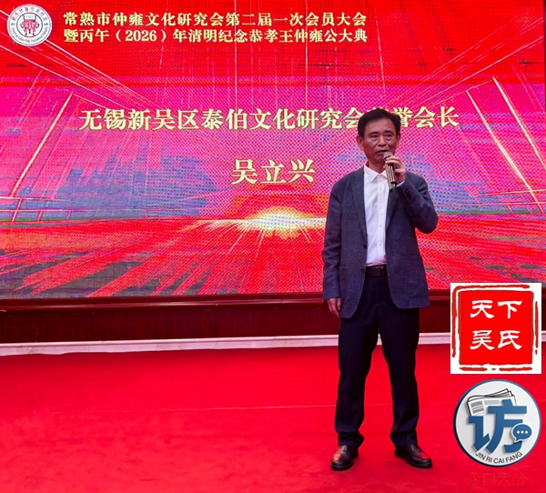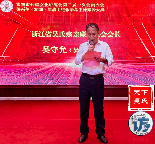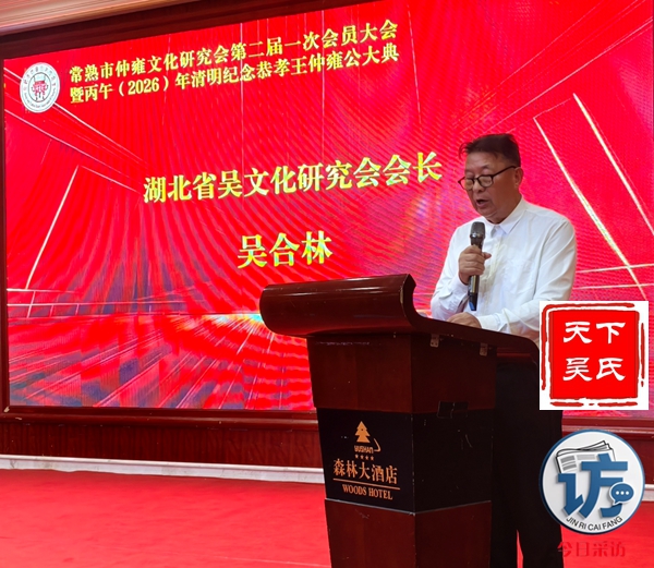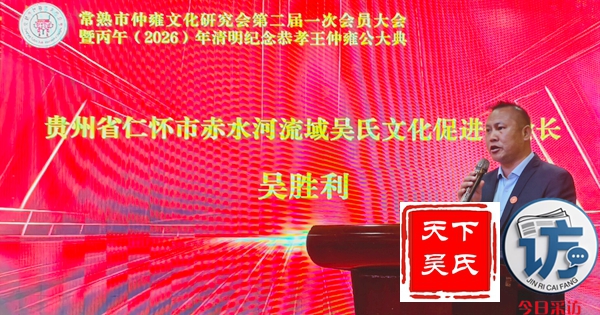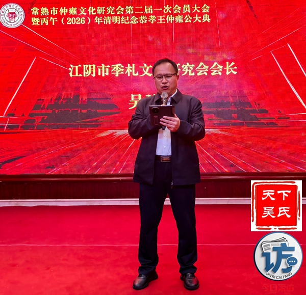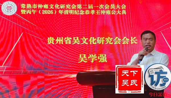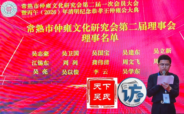 首先,请允许我代表常熟仲雍文化研究会,向莅临晚宴的各位领导、各位宗亲、各位来宾,表示最热烈的欢迎和最诚挚的感谢!仲雍公,是吴文化的重要奠基人,是中华民族谦让、孝悌、包容、笃行精神的杰出代表。三千多年前,仲雍公与泰伯公一同,为成全父志,三让天下,千里奔吴,断发文身,拓荒江南,教化乡民,共筑勾吴基业,奠定了吴地千年繁华之基。仲雍公的至德精神,不仅是吴氏宗族的精神瑰宝,更是中华优秀传统文化的重要组成部分,深深镌刻在吴地人民的血脉之中,代代相传,历久弥新。