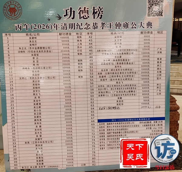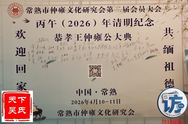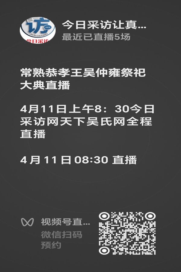此外,4月11日上午八点半今日采访网、夭下吴氏网将同步全程直播丙午(2026)年清明纪念恭孝王仲雍公祭祀大典盛况。