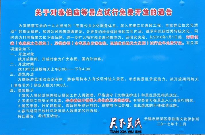 吴氏祖地泰伯庙等景区2018年免费开放公告