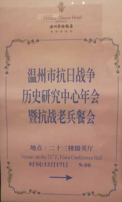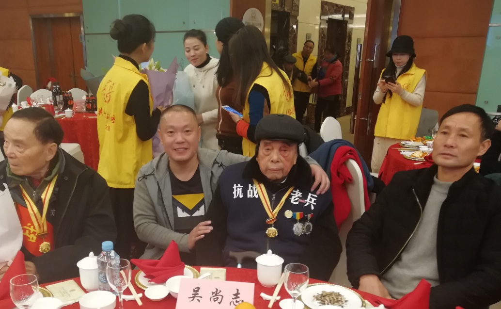 2017年12月17日,30位温州籍抗战老兵来到温州五马街五星级华侨饭店,参加温州抗战历史研究中心年会暨新书发布会,这也是抗战老兵们迎新年战友会。这次战友会,是由包括浙江温州吴燕火宗亲与吴义虎宗亲在内的温州关爱抗战老兵志愿队与仁心公益志愿队,为抗战老兵们举办的。参加战友会的,还有来自广州、南京、宁波和金华等地的志愿者们。