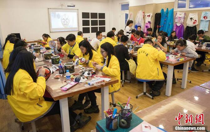 2017菲律宾华裔青少年“中国寻根之旅”冬令营的近两百名华裔青少年在哈尔滨市风华中学体验脸谱绘画课。活动期间,来自马来西亚、菲律宾、印度尼西亚和澳大利亚四国的华裔青少年们将在黑龙江开启“冰雪狂欢”模式。