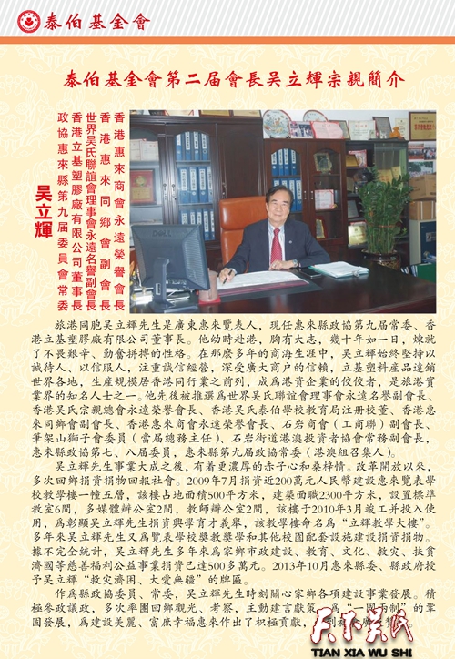 泰伯基金会会长吴立辉致天下吴氏网贺信