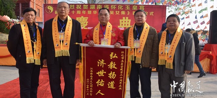 中国报道讯(记者吴蜀丰)今日(2017年12月26日),来自世界至德总会,中华吴氏宗亲总会,湖北吴氏文化研究总会,湖北新洲至德堂、新洲吴氏文化研究会、红安吴氏文化研究会、大悟吴氏文化研究会、咸宁吴氏文化研究会、鄂东吴氏文化研究会;湖南省至德文化委员会、湖南省吴氏宗亲总会,湖南长沙市、怀化市、衡阳市、郴州市、常德市、湘潭市、娄底市、益阳市、平江县、醴(李)陵市等吴文化至德文化研究机构,贵州至德文化研究会及贵阳市、黔(前)东南等地至德文化研究机构,江西吴氏文史研究会、江西省吴氏宗亲总会、赣(干)南吴文化联谊会;浙江吴文化宗亲会、温州泰伯文化研究会、温州吴氏文化交流会;厦门市吴文化研究会及海内外吴氏宗亲组织等相关有关部门负责人及近800多名代表相约湖南省怀化市参加玉皇宫建宫二十周年盛典。