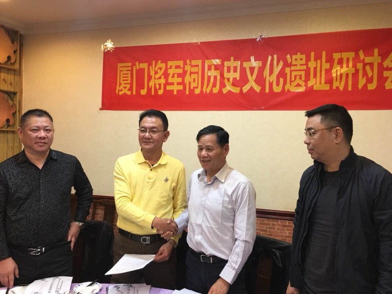 2017年12月24日在厦门市思明区后江埭路上青本港海鲜酒楼举行“厦门将军祠文化遗址研究会”。会议由厦门市吴文化研究会和厦门市临濮文化研究会联席召开。在厦门市吴文化研究会吴国荣会长主持下,特邀吴施两姓代表与会。厦门吴文化研究会会长吴国荣、副会长吴一凡、吴先辉、吴福财、秘书长吴金武、副秘书长吴同一、主任吴冬青、吴小平、吴乔英出席会议;厦门市临濮文化研究会会长施少雄、监事长施性勤、秘书长施义民、副会长施荣鹿、施性赤、施毓铭、施云辉、施性扩、施水金、施丽娟出席会议。吴国荣会长、施少雄会长分别致辞,会议由施毓铭汇报了将军祠相关提案。