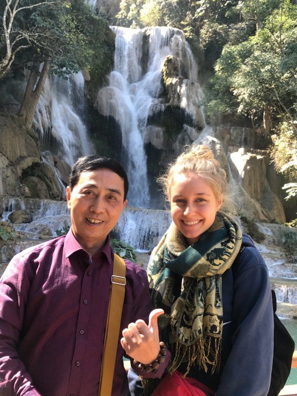 俊伯大师与德国背包客在琅勃拉邦光西瀑布合影