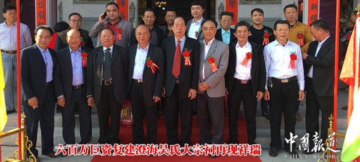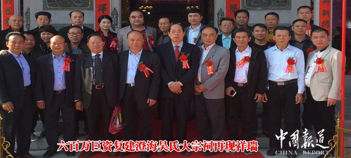 中国报道讯(记者吴蜀丰特约釆编 吴卫东 特约通讯员 吴彬)日前,澄海吴氏宗亲会,在广东省汕头市澄海隆都吴氏大宗祠,举办大宗祠复建重光庆典。