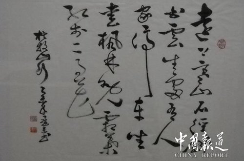 中国报道讯(记者吴蜀丰)2017年12月31日,由湖南省衡阳县王船山研究室主办的“王船山实学传习研讨会暨衡阳县船山文化传习总会第二届理事会选举会议”在衡阳县政府常务会议室举行,湖南衡阳至德文化研究会副会长吴冠东被聘为船山文化艺委会主任委员、被评为2017年度优秀船山国学研究、传习艺术家,并作为衡阳市艺术界代表发言,吴冠东还草书了船山先贤的精句:“经世致用,知行并进,纯志成德,相天造命”。
