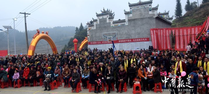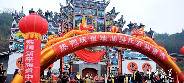 中国报道讯(记者吴蜀丰)耗资上百万元,历时1年时间修建的位于贵州省天柱县境内的地湖吴氏宗祠今日(2018年元旦)举办祭祀盛典仪式。