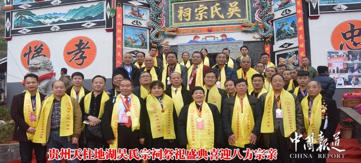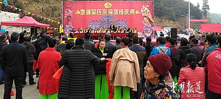 中国报道讯(记者吴蜀丰)耗资上百万元,历时1年时间修建的位于贵州省天柱县境内的地湖吴氏宗祠今日(2018年元旦)举办祭祀盛典仪式。