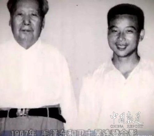 吴连登说:第一次见毛主席是1961年,在中南海的颐年堂见到毛主席。我那个心情又高兴、是又紧张。当时我觉得我没想到我一个穷孩子,进到中南海,而且能见到毛主席。当时我的心情,我就是说话的时候,我有点那个都不是很自然了。主席坐下来以后,完了以后当时接一杯水,当时这个王延平,他叫我:"你今天这杯水,你得给主席端过去。"这样呢,我就端了这杯水,我这个手有点颤抖。主席只要第一次见到生人,主席都问得特别仔细,"你是姓什么?叫什么?什么地方人?多大年龄?"我当时跟主席说:"我叫吴连登。"后来主席说,后来就问哪,主席说:"你这个名字是你父母亲给你取的吗?"我说:"不是。"主席说:"我看也不是。"后来他说:"是谁给你取的这个名字呢?"后来我告诉主席,我说:"我这个名字是一个老和尚给我取的。"主席说这个名字好、好,完了以后他就问我什么地方人?我说我是江苏盐城的,后来他说江苏盐城,盐城那个地方,他说我很熟悉,因为新四军重建军部不就在江苏盐城吗,所以主席对那里印象特别深。1964年在国庆十五周年的这一天,22岁的吴连登没想到毛泽东在天安门城楼检阅的休息期间,把他找到身边,请他到自己家里去工作。这对于当时只是中南海一名普通服务人员的吴连登来说,是一个莫大的荣誉,他有点无法相信这是真的。
